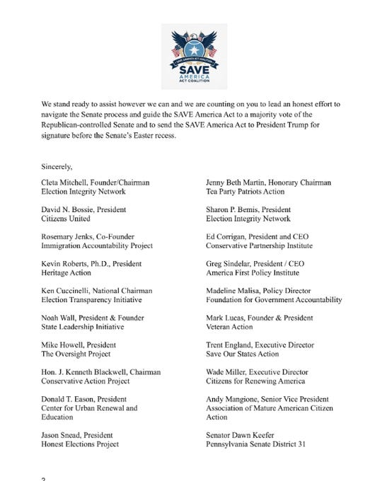 BREAKING: 80 prominent conservative organizations sign on to the SAVE America Act Coalition, urging