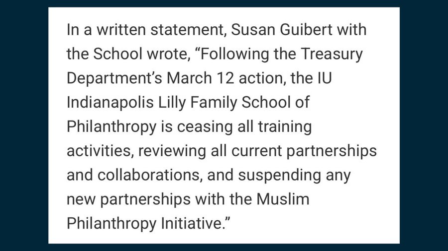 UPDATE: Indiana University is ceasing all training activities, reviewing current collaborations, and suspending new partnerships with the Muslim Philanthropy Initiative.