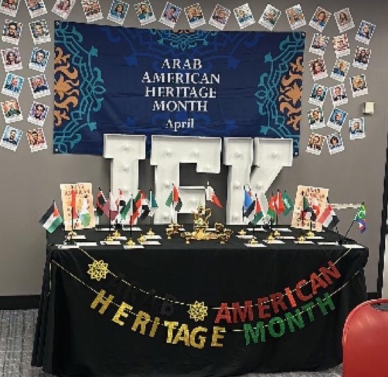 is pushing “Free Palestine” genocidal propaganda for Muslim Arab Heritage Month.
