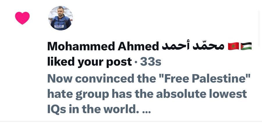 First person that liked this post. Even fake Gaza "journalists" agree with me.Elena FeliciaApr 04, 2026ShareFirst person that liked this post. Even fake Gaza "journalists" agree with me.