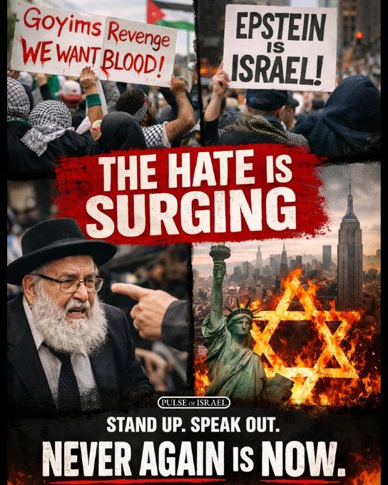 We’re seeing terrifying signs: ‘Goyims revenge - we want blood’ in Los Angeles, ‘Epstein is Israel’ in New York, and verbal threats against rabbis in NYC.