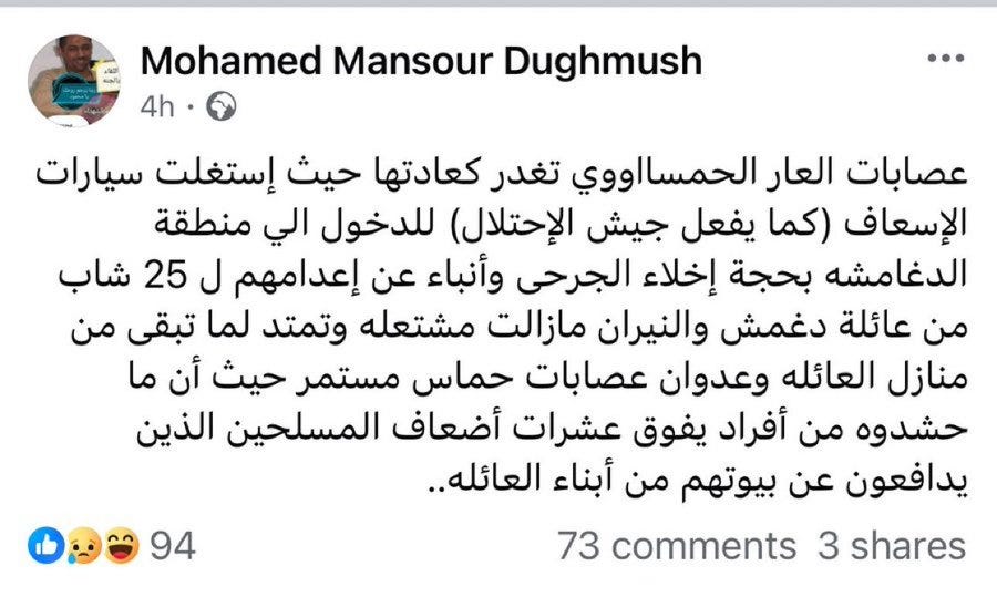 So Hamas used ambulances to enter the Dughmush clan territory in order to execute them. I repeat, Hamas used ambulances in order to kill Palestinians. No one will care because now Israel is not involved