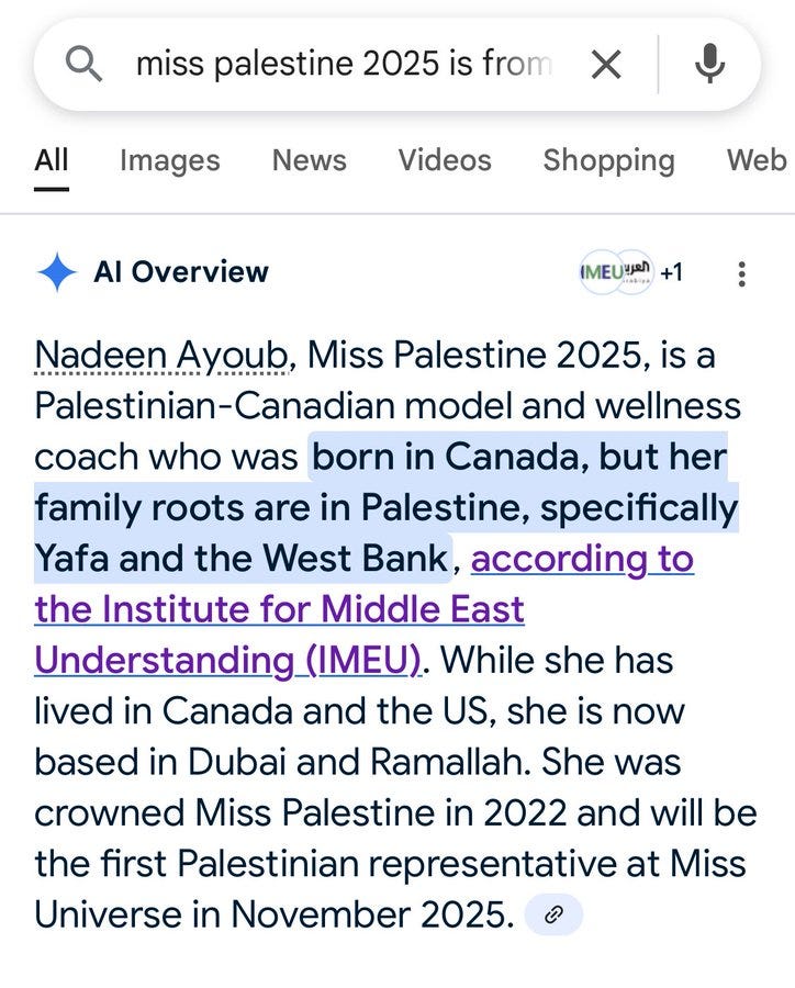 Miss "Palestine" is from Canada.