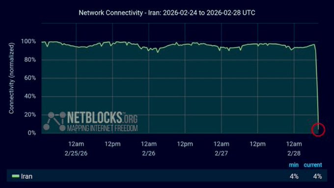 NOW: Internet blackout in Iran. Hearing mobile networks also down.Elena FeliciaFeb 28, 20263ShareNOW: Internet blackout in Iran. Hearing mobile networks also down.