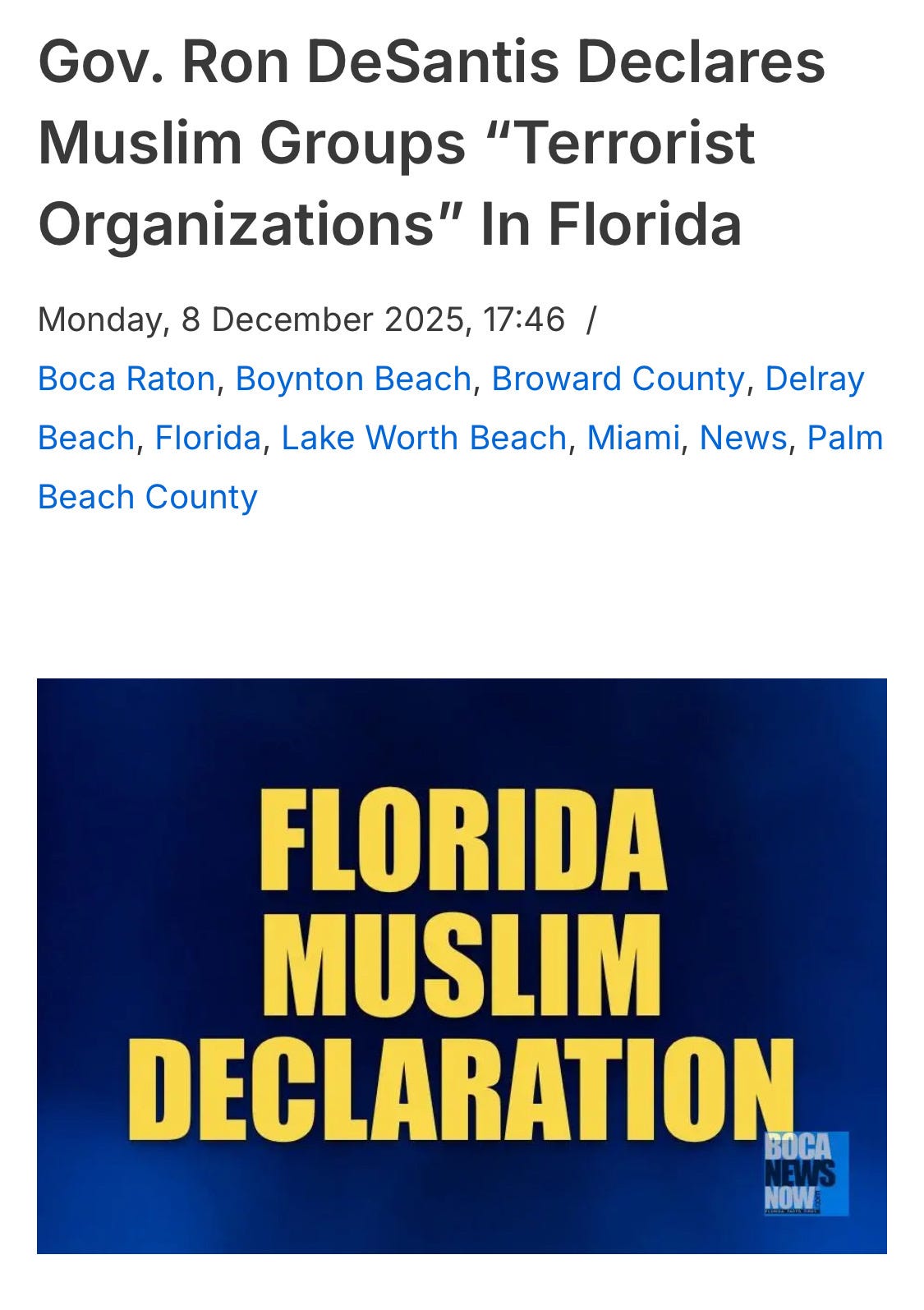 Ron DeSantis just designated CAIR as a terrorist organization!Shirion CollectiveDec 09, 2025123ShareTold you we were coming for you CAIRFlorida Muslim terrorists are no longer welcome. Period. It's an honor to have been condemned by these scumbags!