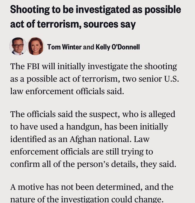 The shooter was a MUSLIM National from AFGHANISTAN.