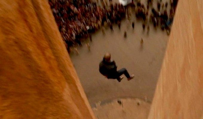 This infamous photograph shows a man being thrown to his death from a rooftop by a Muslim mob.